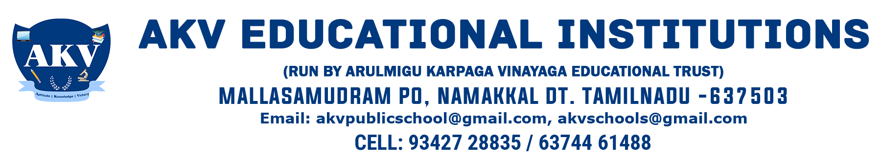 AKV Educational Institutions, established in 2012, were founded by the Arulmigu Karpaga Vinayaga Educational Trust—an initiative led by a dedicated group of experienced Headmasters and seasoned Academicians with a vision to transform the educational landscape. Rooted in a commitment to excellence and guided by strong cultural values, the Institutions aim to provide a holistic and disciplined learning environment.