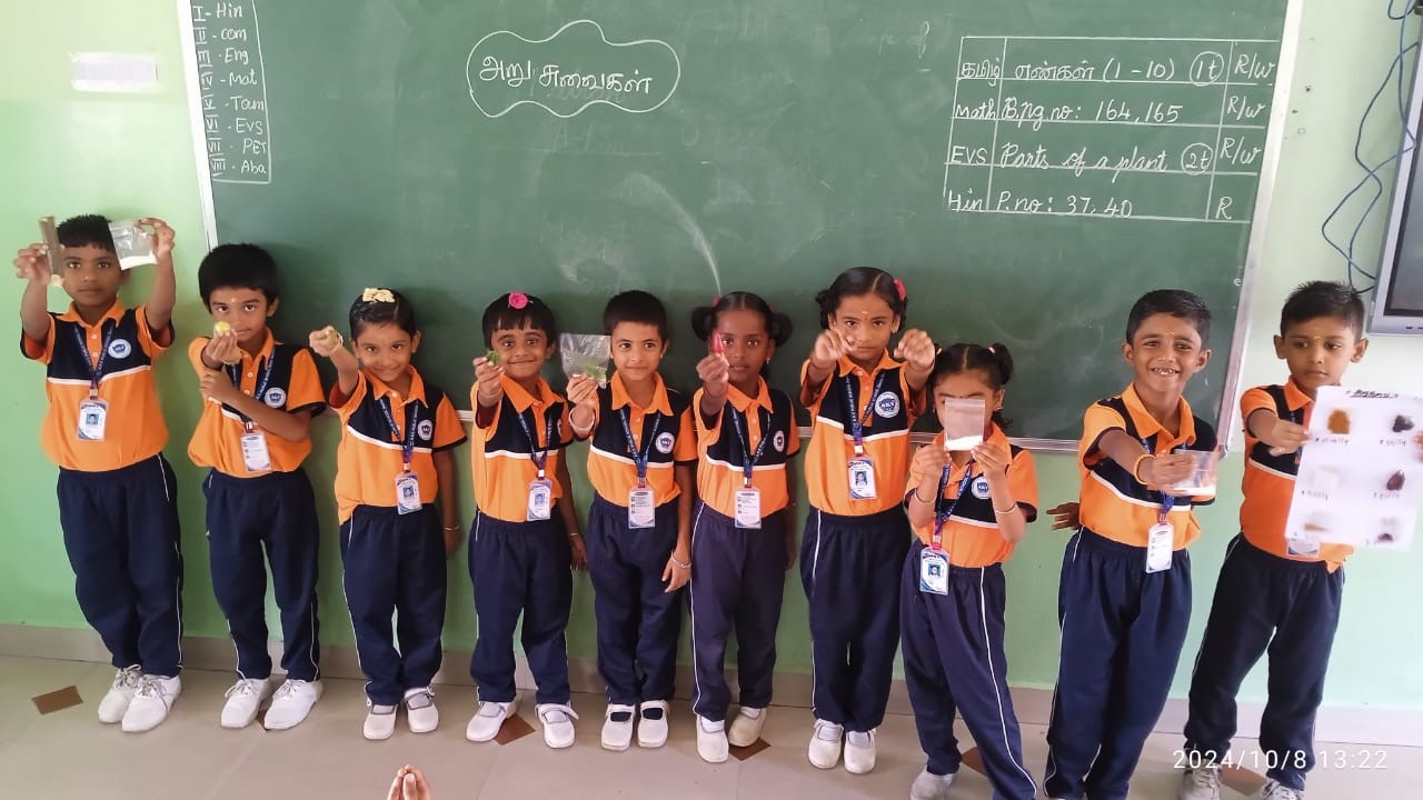 அறுசுவை உணவுகளை உண்டு சுவையறிந்து அந்த சுவைகளின் பெயர்களை கூறினர்.